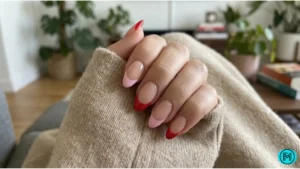 Red French tips make a bold statement while still maintaining elegance. Instead of painting the entire nail red, using red just on the tips keeps the design classy and balanced. A nude base allows the red to pop without looking too dramatic.